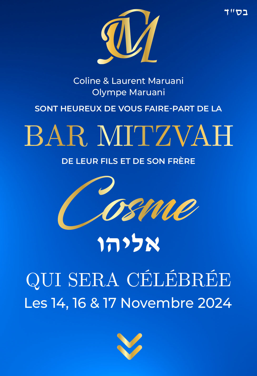 Nous serons heureux de vivre cemoment avec vous le Jeudi 14 novembre 2024 à 10h45Lecture de la Paracha Vayéra à la Synagogue Copernic 24 rue Copernic, 75016 ParisL’Office sera suivi d’un brunch sur place